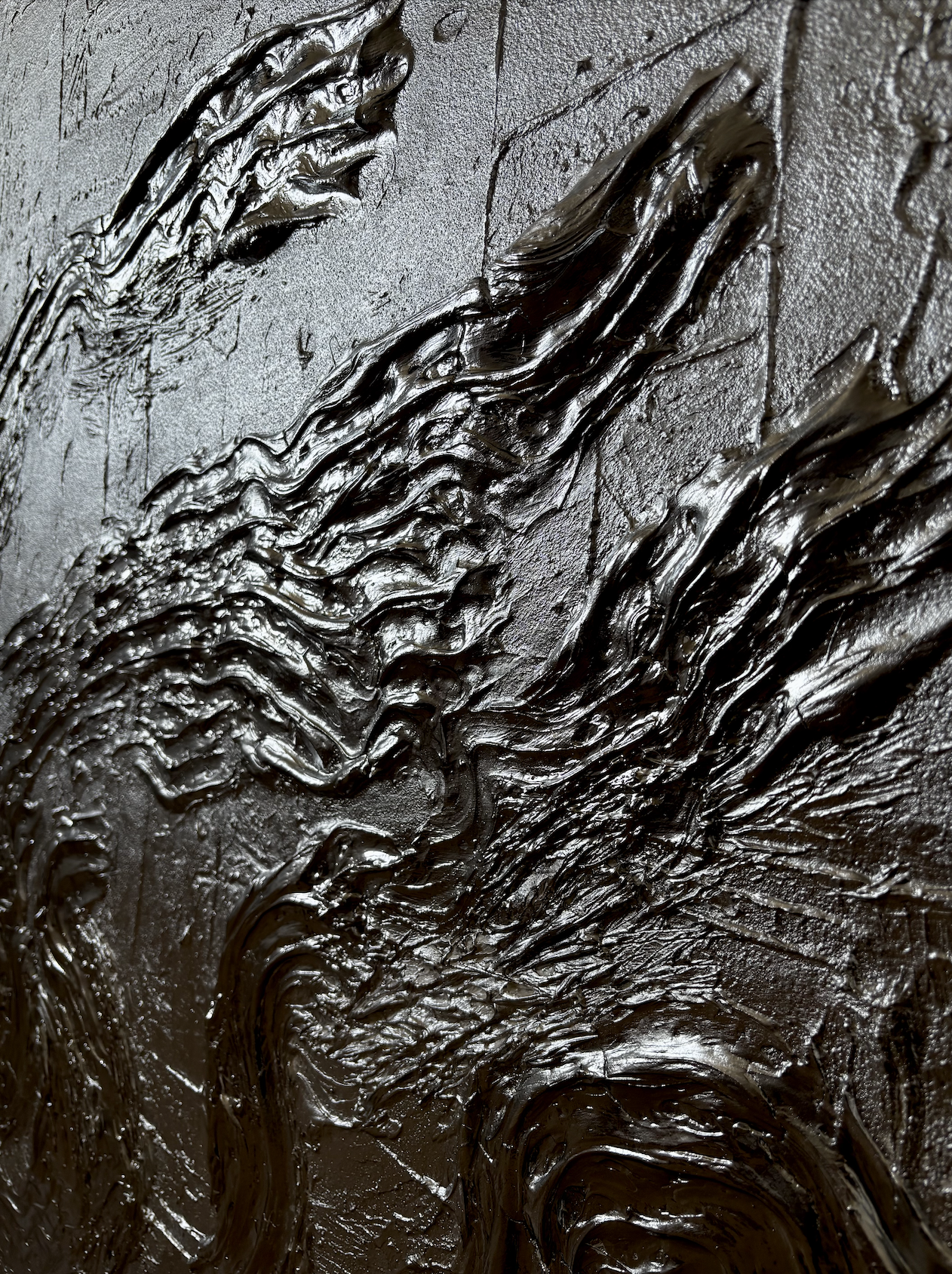 Haptique explore le toucher dans toute son épaisseur non seulement physique, mais émotionnel, mémoriel, presque animal. La matière est dense, presque vivante. Les textures appellent le regard autant qu'elles attirent la main, et chaque œuvre se pose comme une invitation à ressentir plutôt qu'à observer.